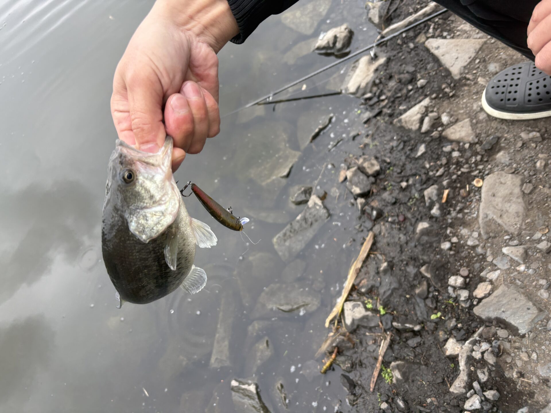 ローライト状態が続きましたが、昨日に比べてバスのレンジが一段落ちたようで、表層よりはワームなどをフォールさせて食わせる方がよく釣れていました。