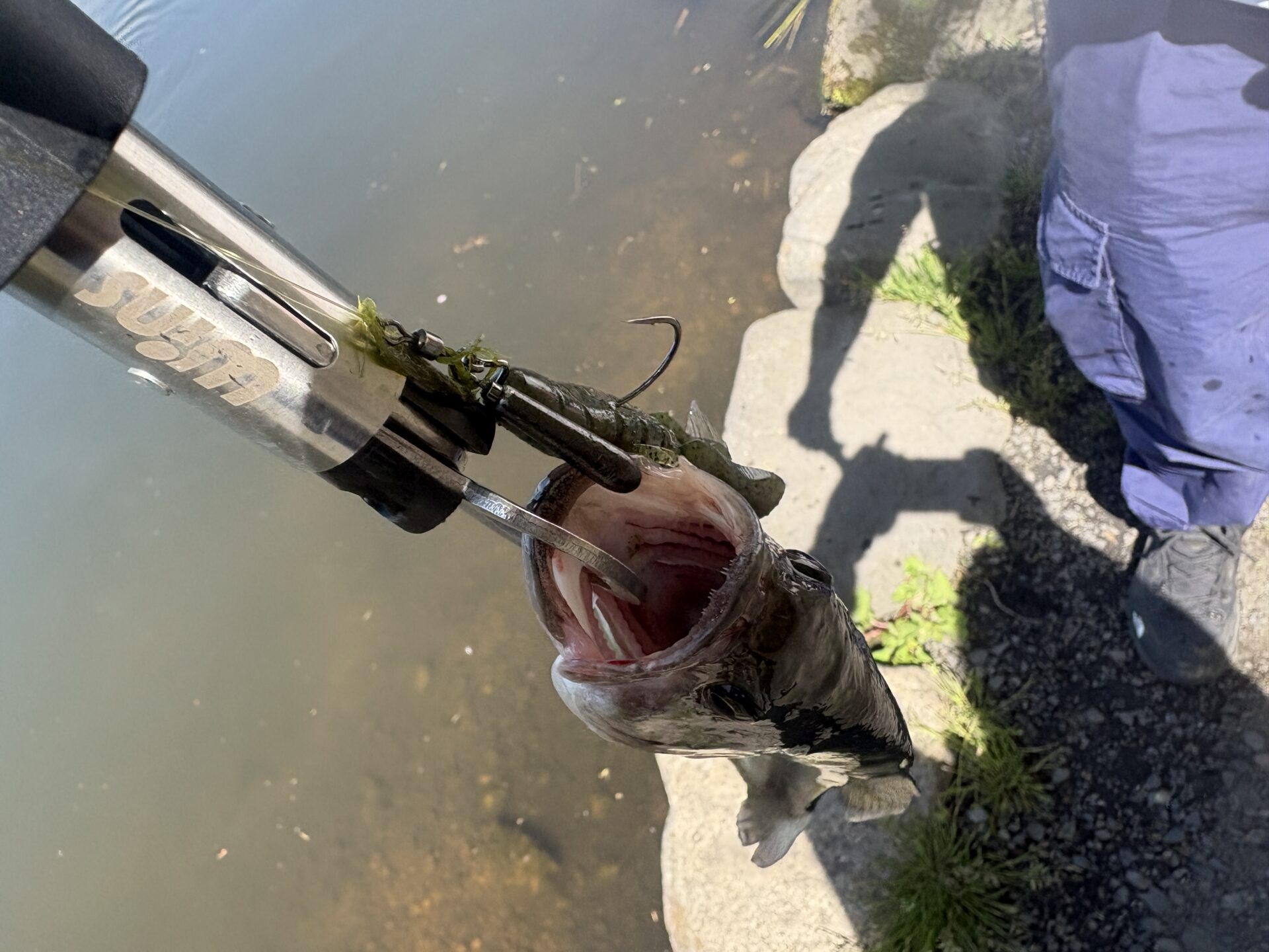浮いている魚には細めのストレート系ワームでの反応がよく、フォールで食うことが多かったようです。40cmUPのバスも釣れました!