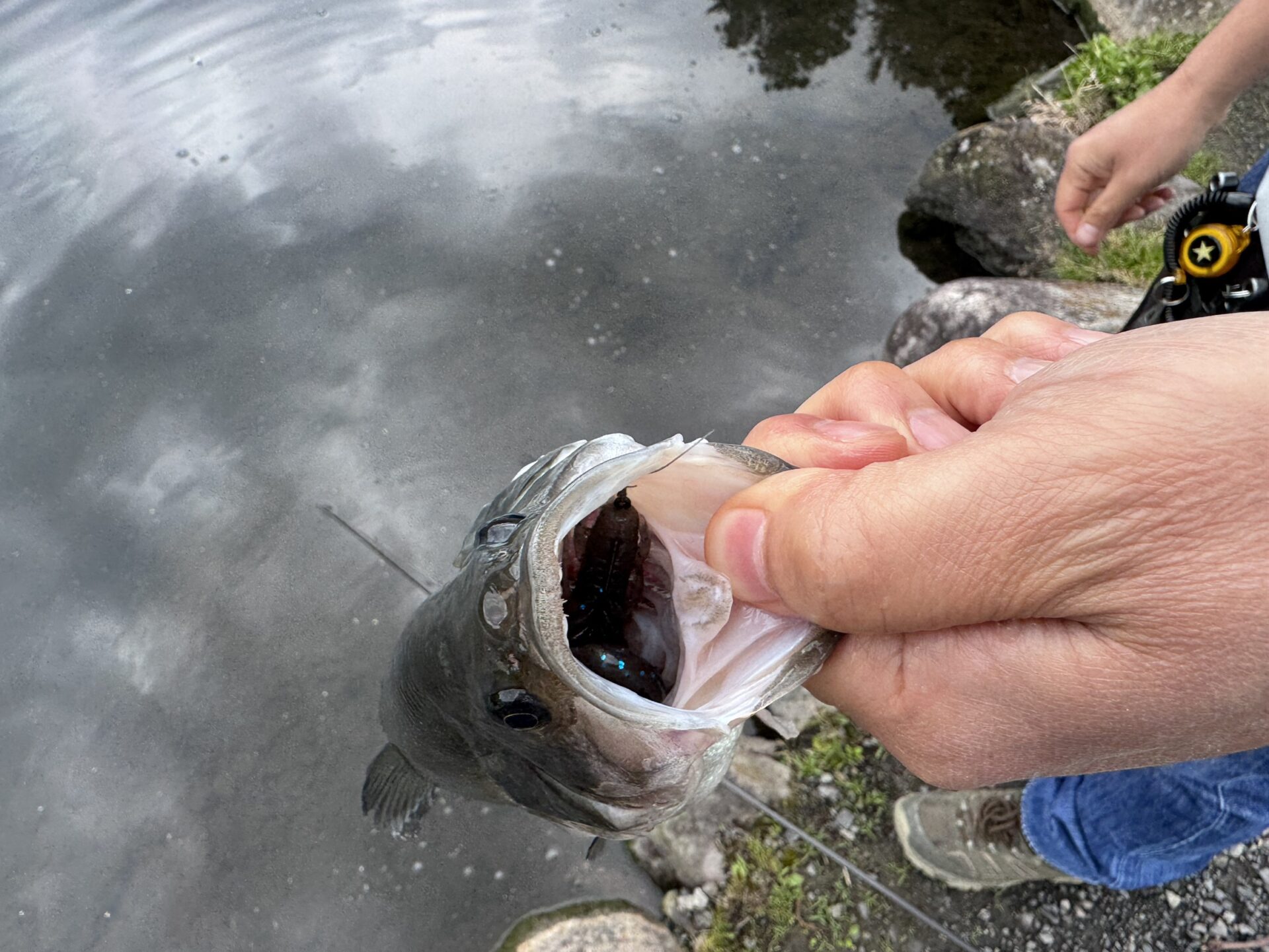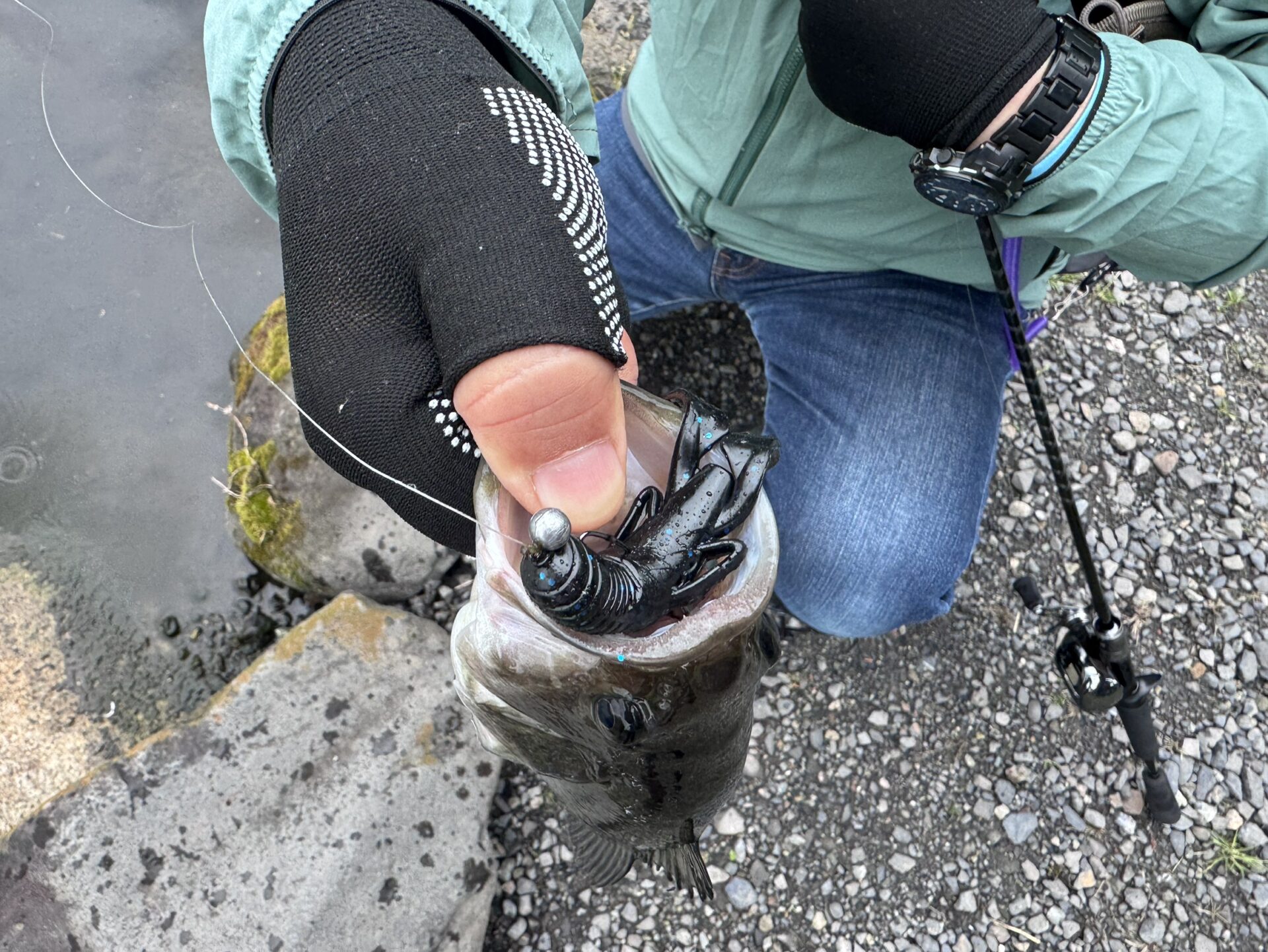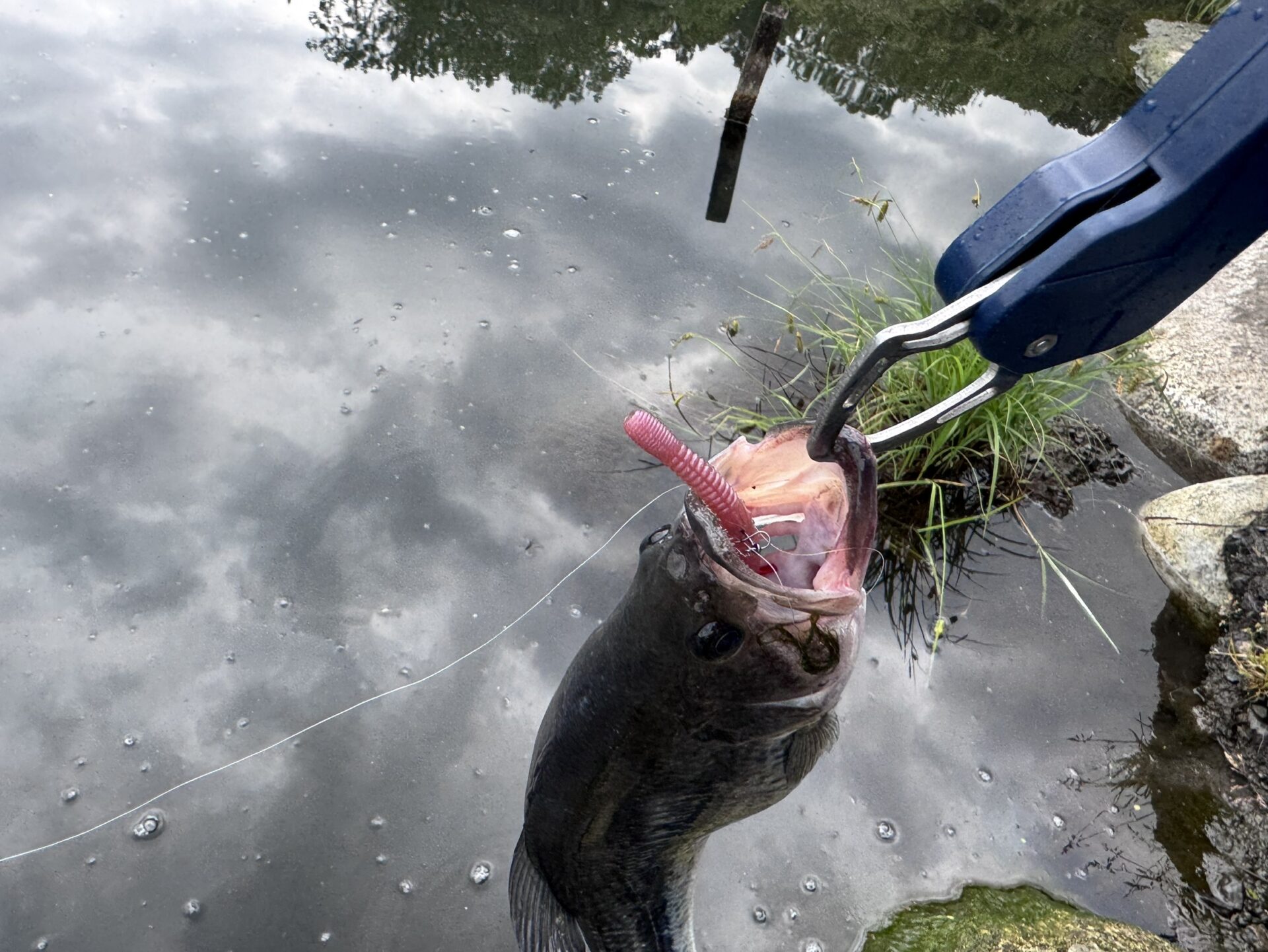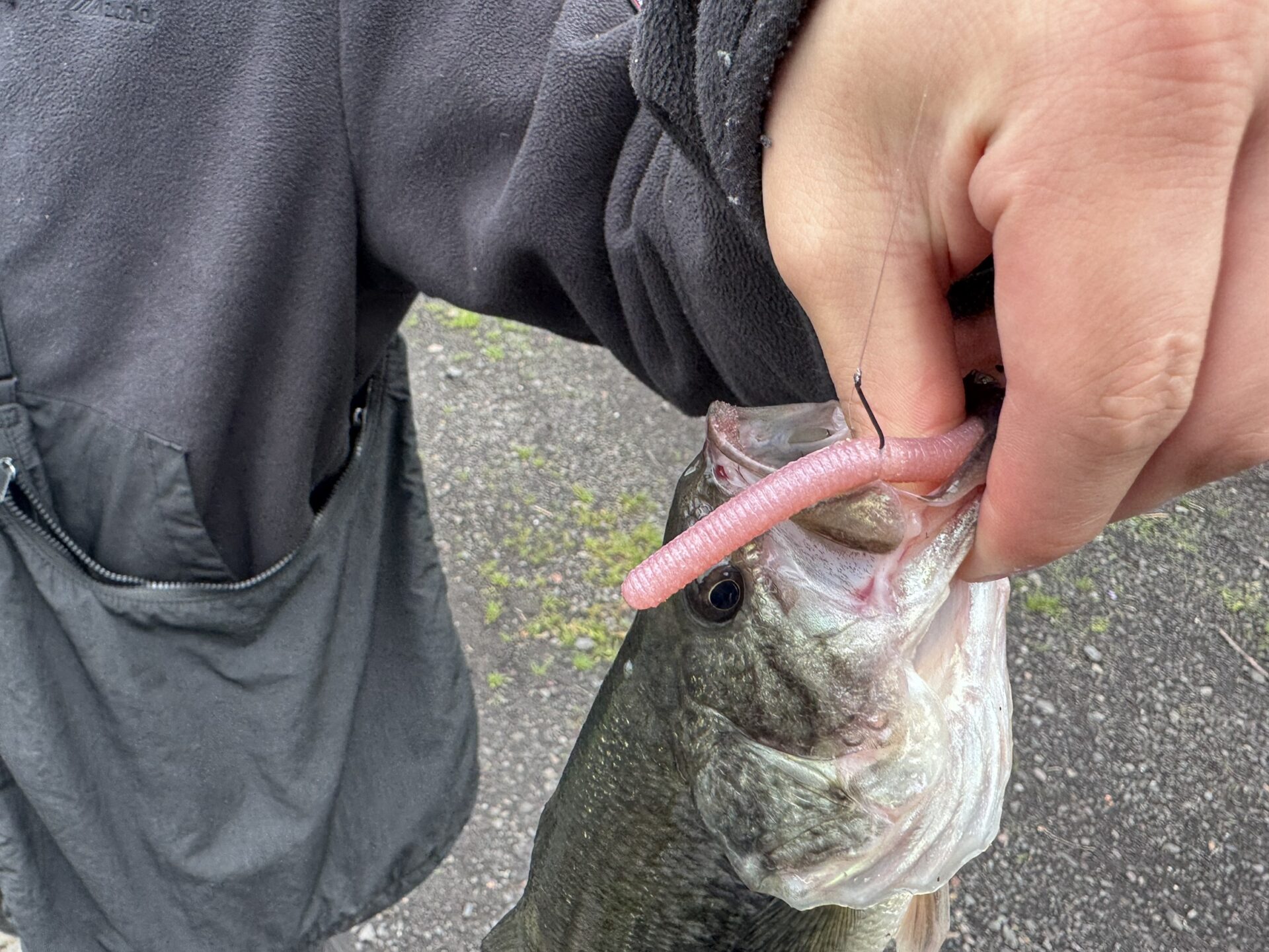 ルアーはテキサスリグやノーシンカーワームでのボトムズル引きでバイトを拾っていくような展開でした。