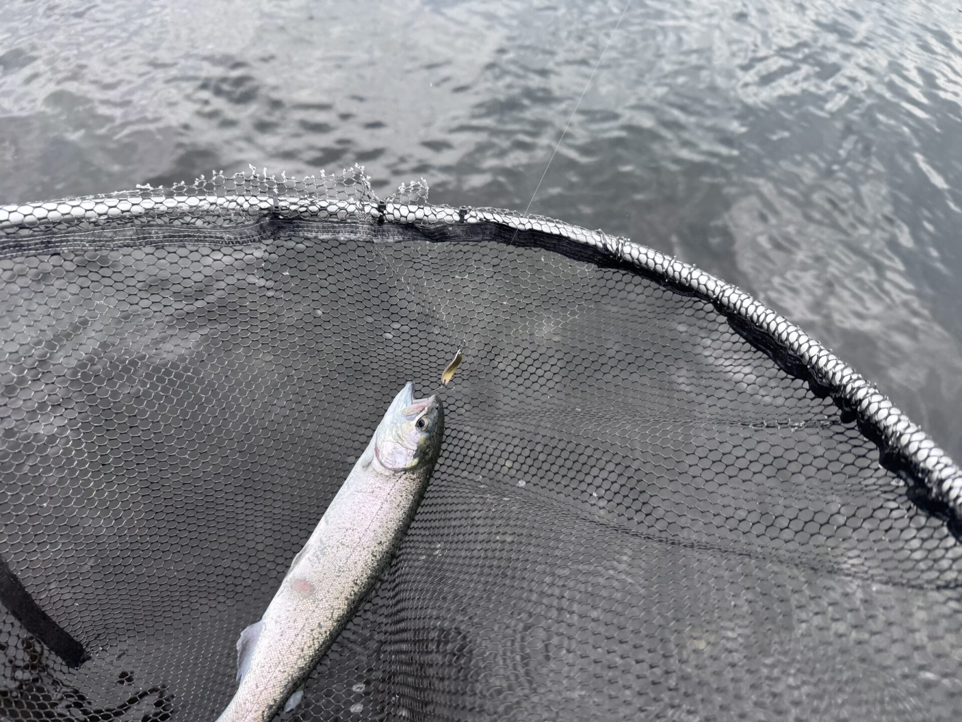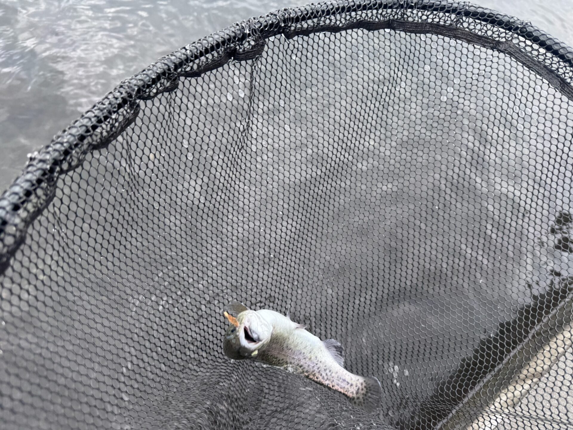 そのため浮上系ミノーへの反応がかなり良く、スプーン系では1.5gほどの重さで中層をしっかり巻くと釣れているように見えました。 1日を通して釣れており良い状況だったと思います!