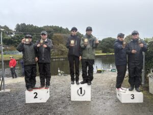 冷たい雨の中での釣りとなり、集中力を維持することも難しく、強い雨が降っていた1回戦は苦戦する方が多かったようです。