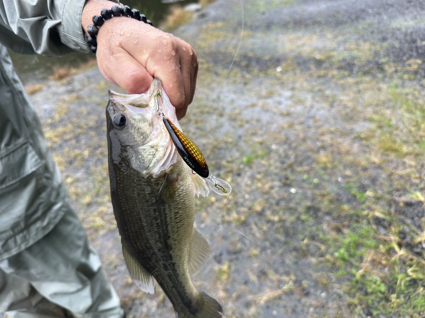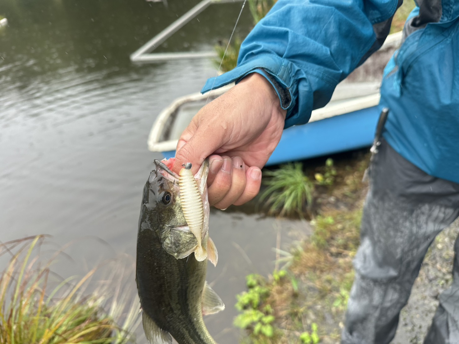 今日は雨が降った影響で気温と水温が下がったため、シャッドとミノーでの食いつきがが比較的好調でした! 1日を通してバスが表層におらず、中層からボトム付近にいました!そのためシャッドでプレッシャーがかかった魚に、ゆっくり巻いたり・巻いて止めてを繰り返したり優しい振動でアピールすることが効果的でした!