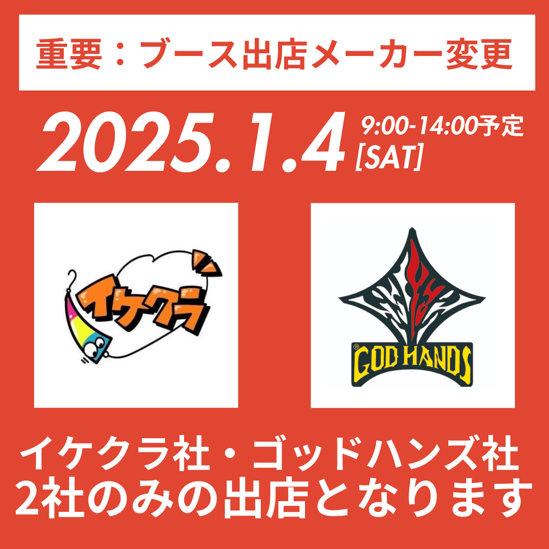 1月4日(土)ブース出店メーカー変更について 明日予定しておりましたメーカーブース出店について、