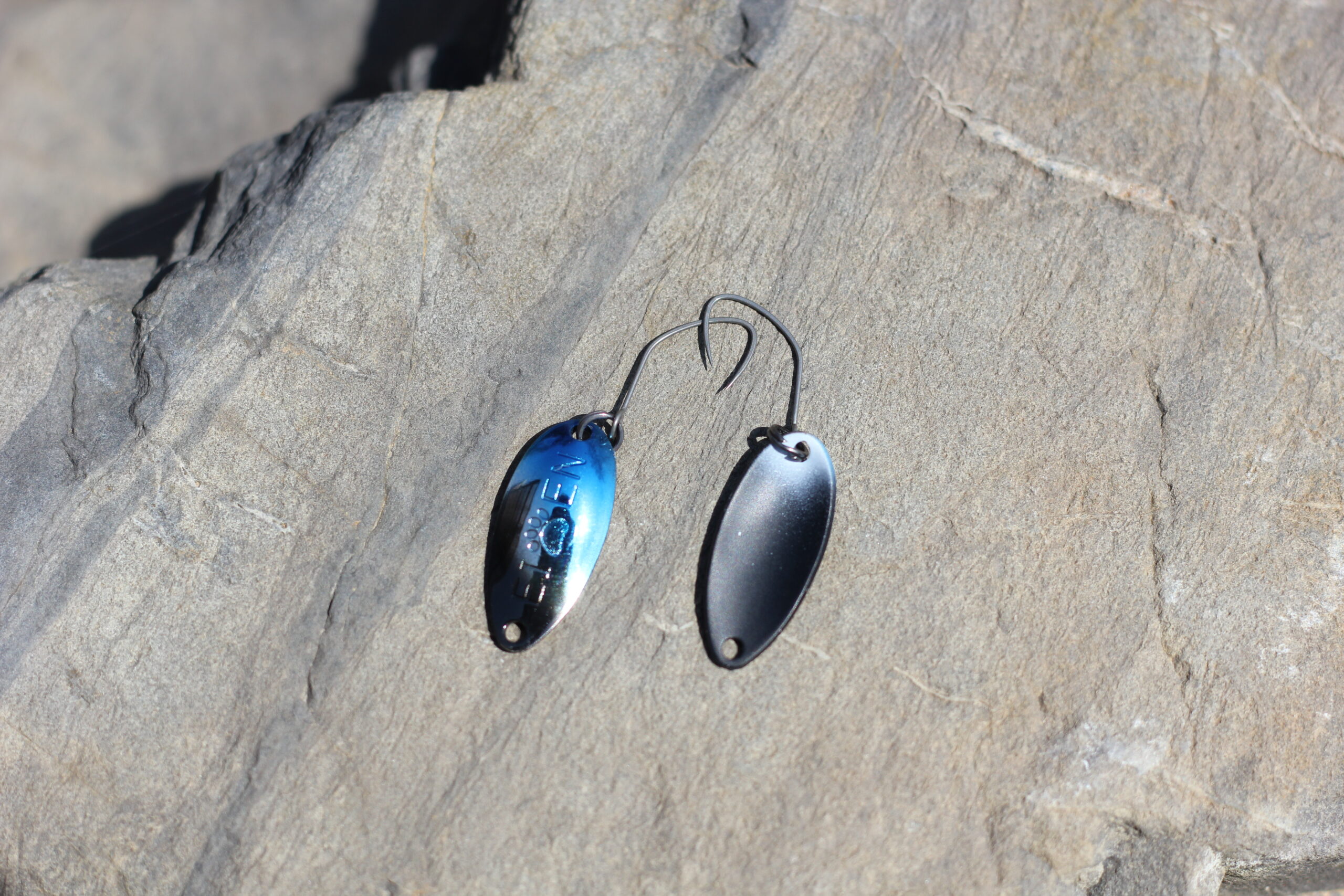 弱って岸際にいる魚をパクパク食べるアオサギ。ニジマスも仕返しの機会を待っていたに違いありません。今回は「アオサギ」という名前らしく「青」を強調したカラーで作成し、朝一や放流後時間が経った時に使えるスプーンとして作成いたしました!