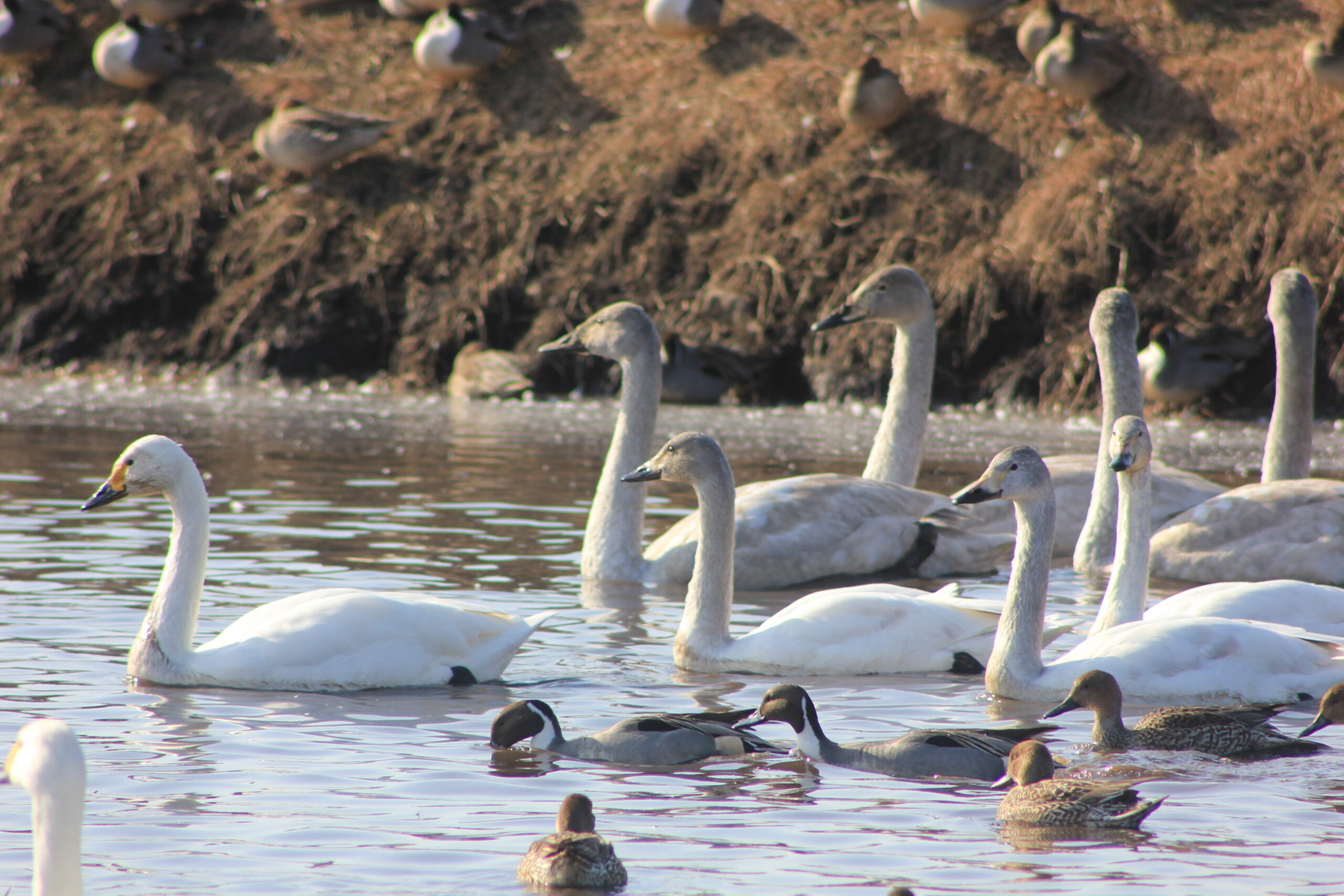 羽田沼周辺で撮影したハクチョウの群れ