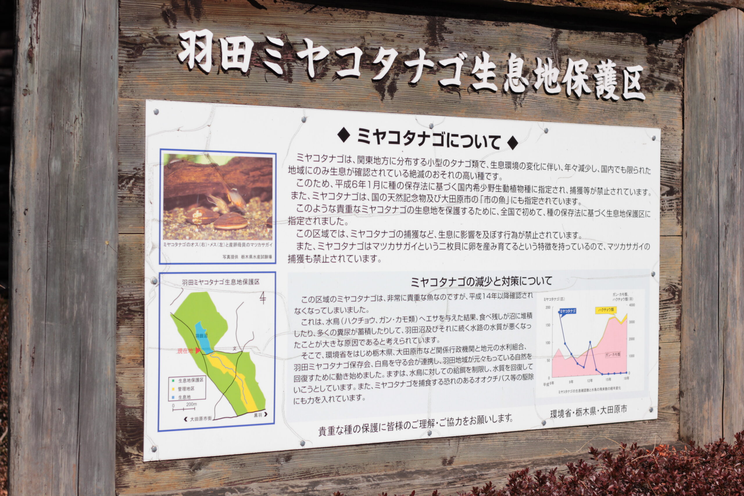 羽田ミヤコタナゴ生息保護区の看板