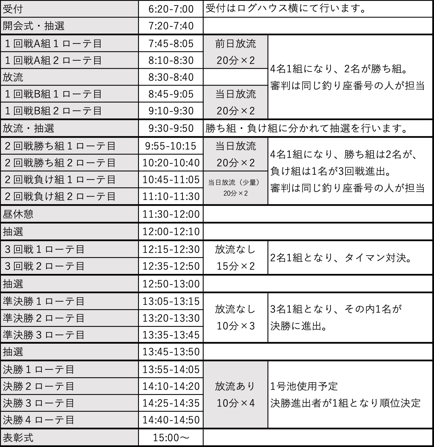 ・大会中の事故による怪我や盗難等・タックルの破損のトラブルに関しては、一切責任を負えませんのでご注意下さい。