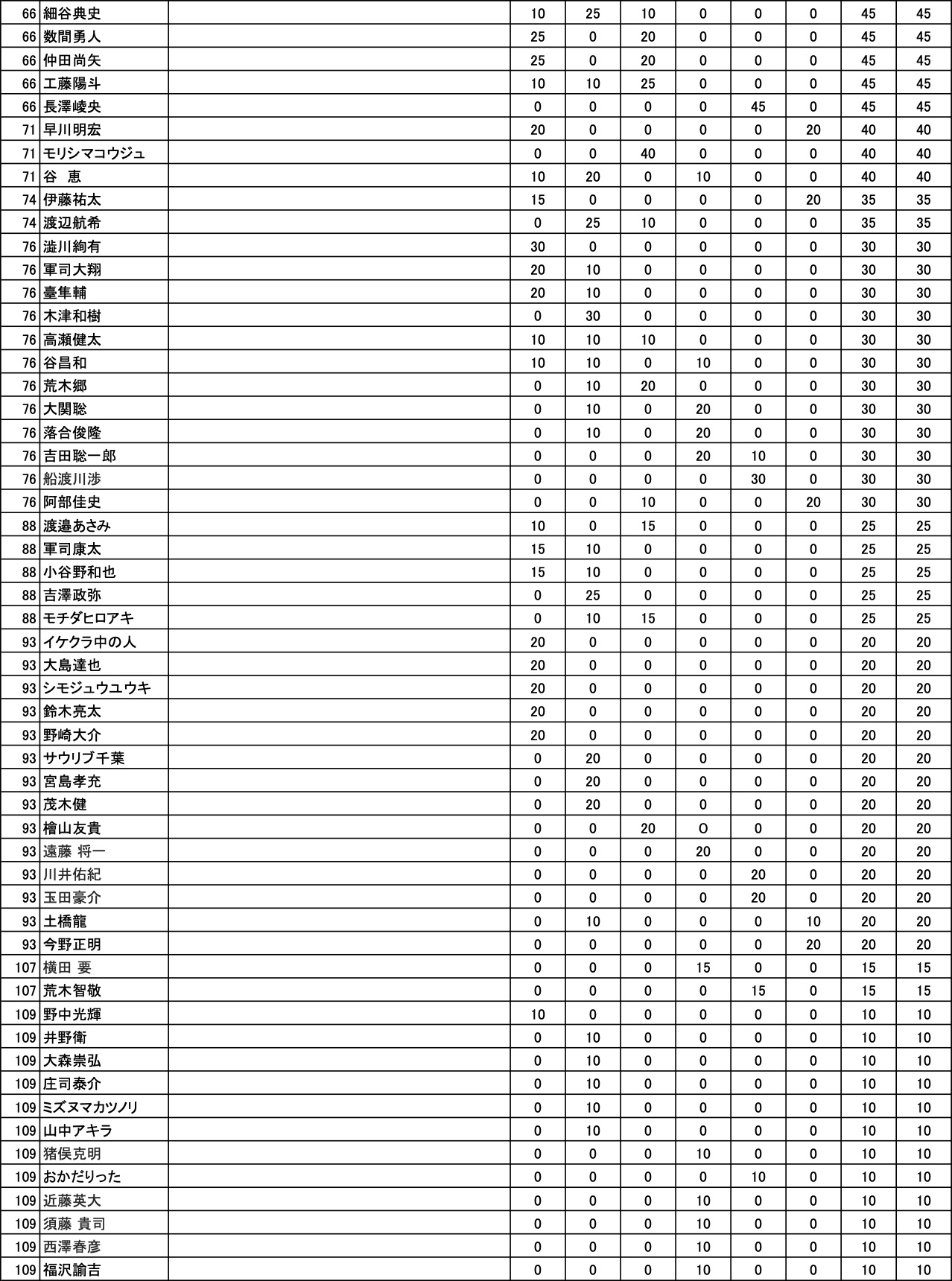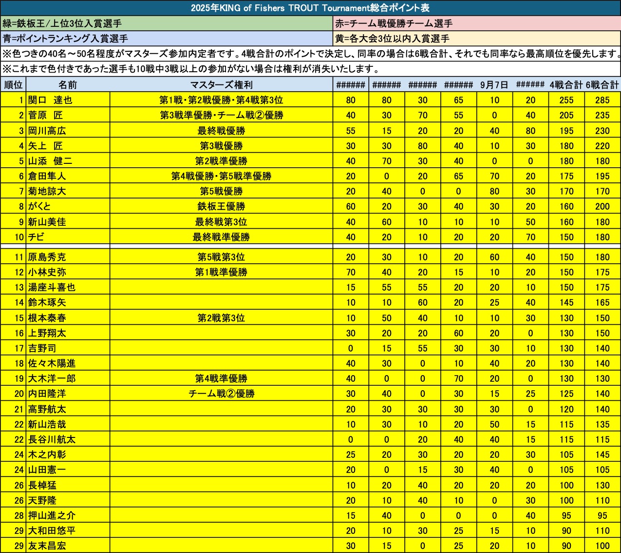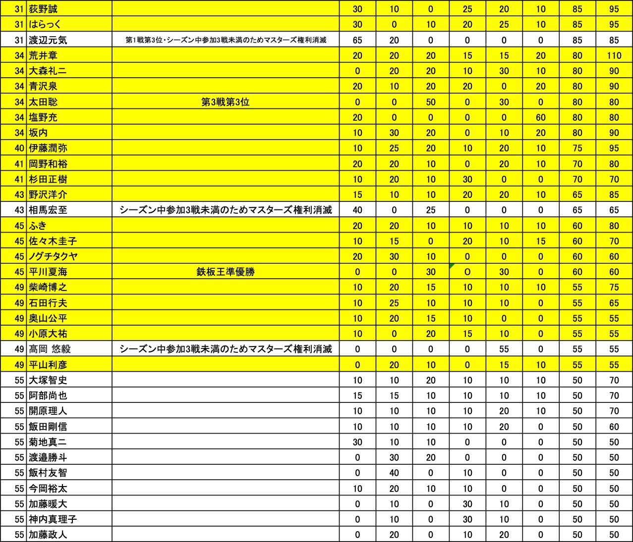 また、当ポイント表は仮のものとなります。修正後、順位・マスターズ出場権等が変動する場合がございますので、あらかじめご了承ください。