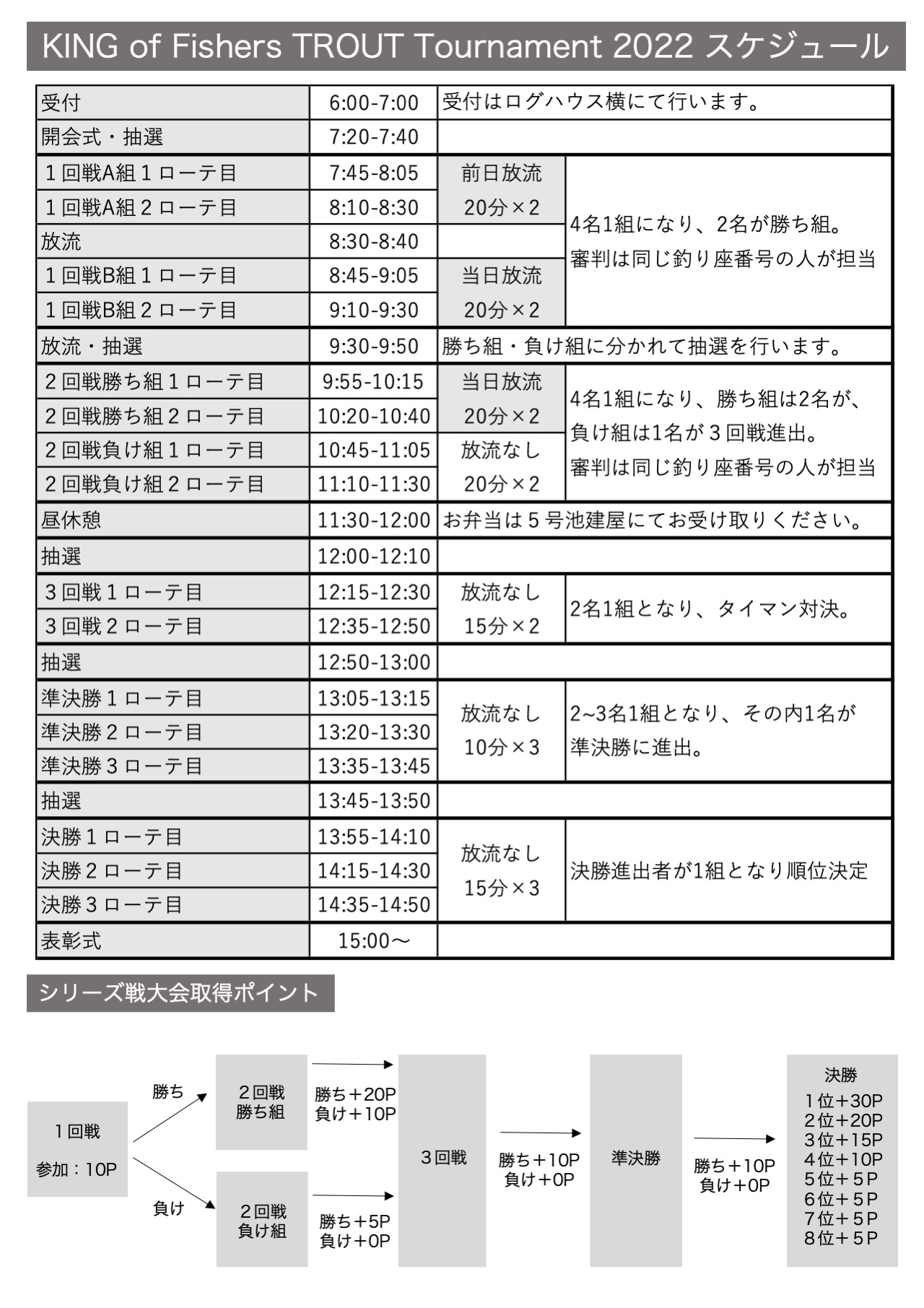 ・トラウトトーナメントは5号池を使用し競技します。(参加人数により4号池も使用する場合があります。)