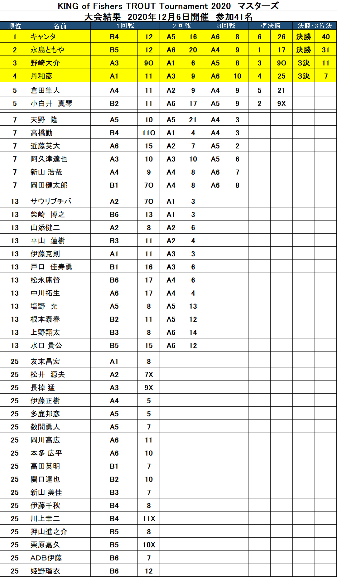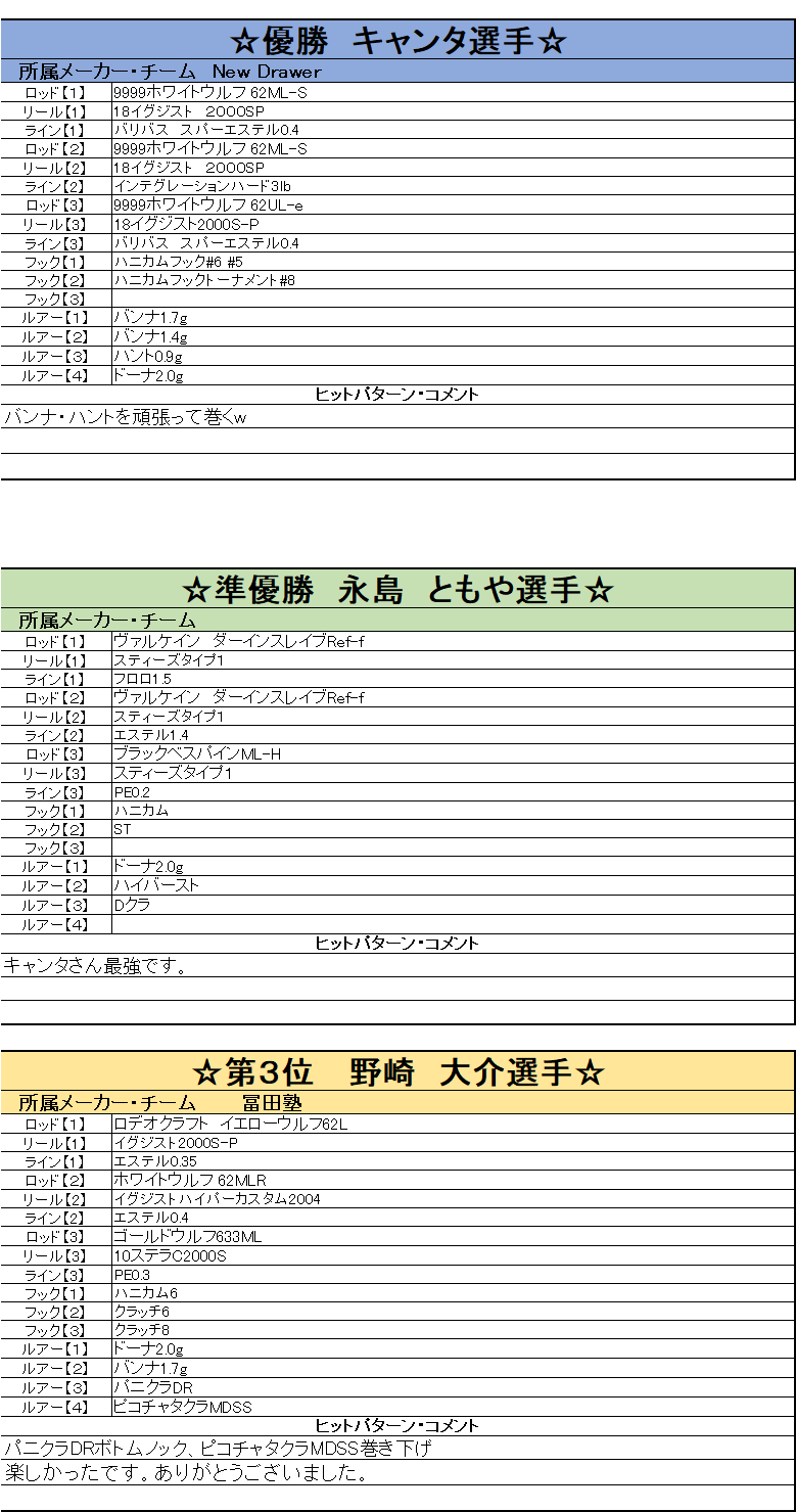KING of Fishers TROUT Tournament 2020 マスターズ戦結果・タックルデータ