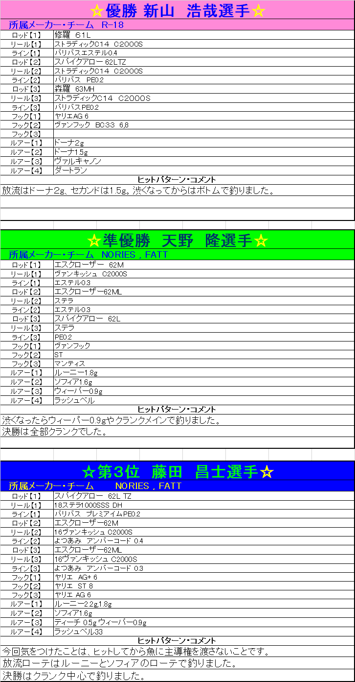 King of Fishers トラウトトーナメント2020 5戦結果・タックルデータ