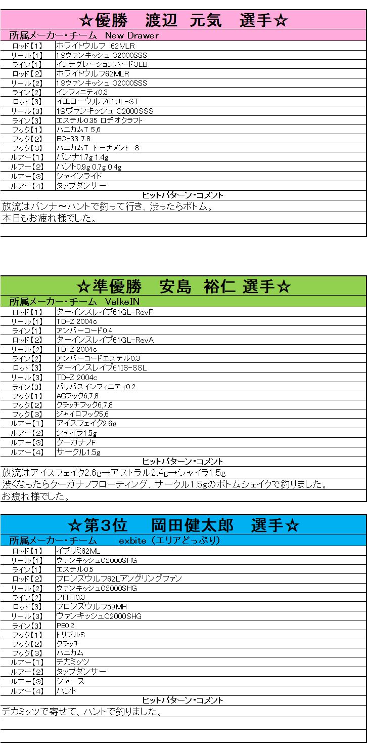 King of Fishers トラウトトーナメント2020 最終戦結果・タックルデータ