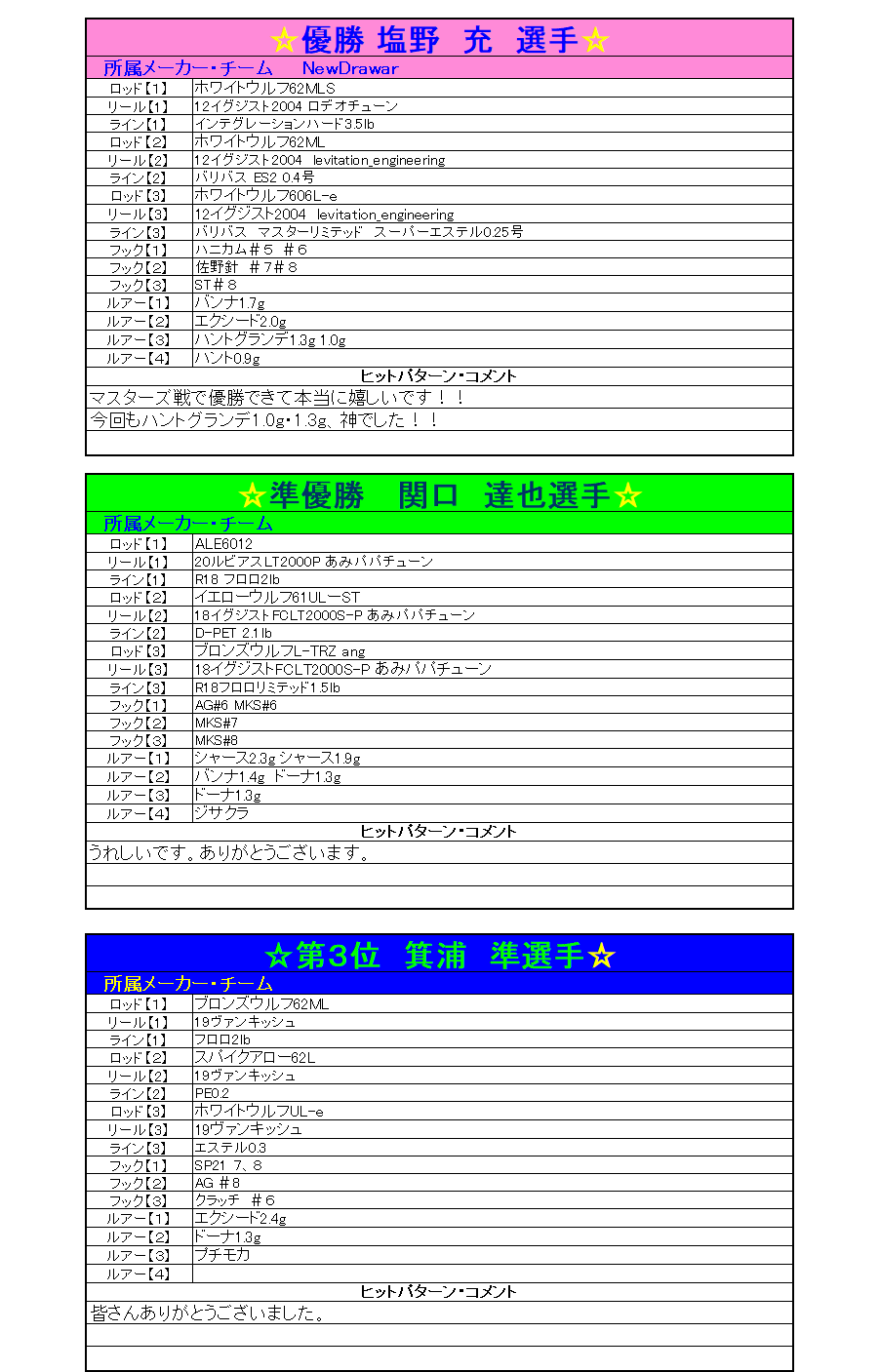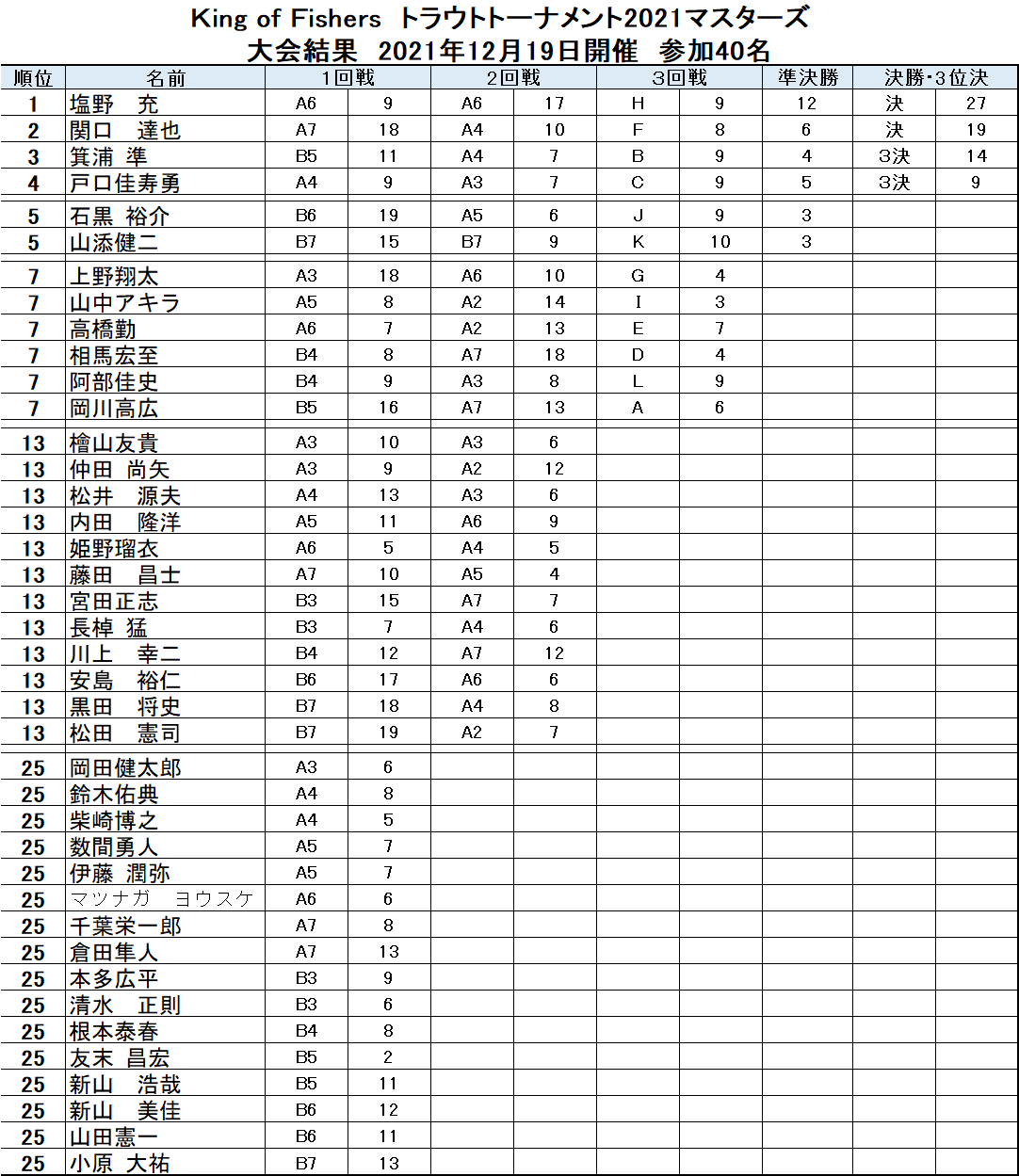 KING of Fishersトラウトトーナメント2021 マスターズ戦結果・タックルデータ