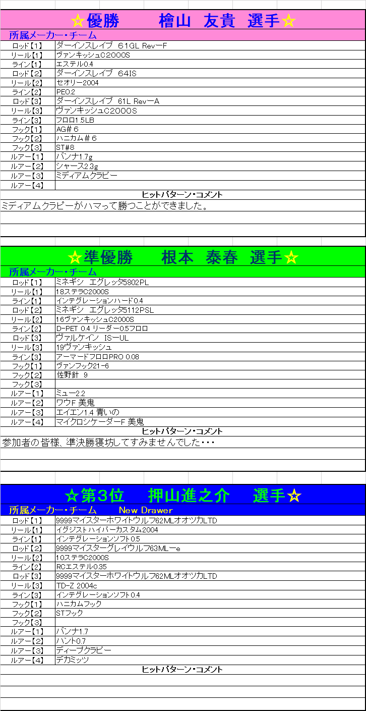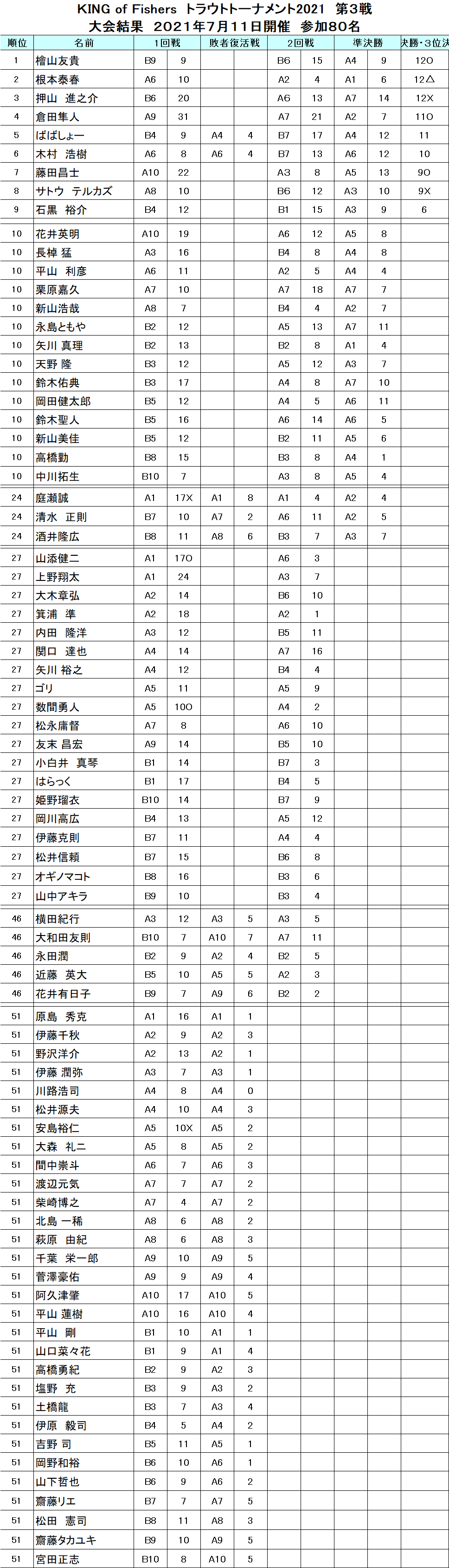KING of Fishersトラウトトーナメント2021 3戦結果・タックルデータ