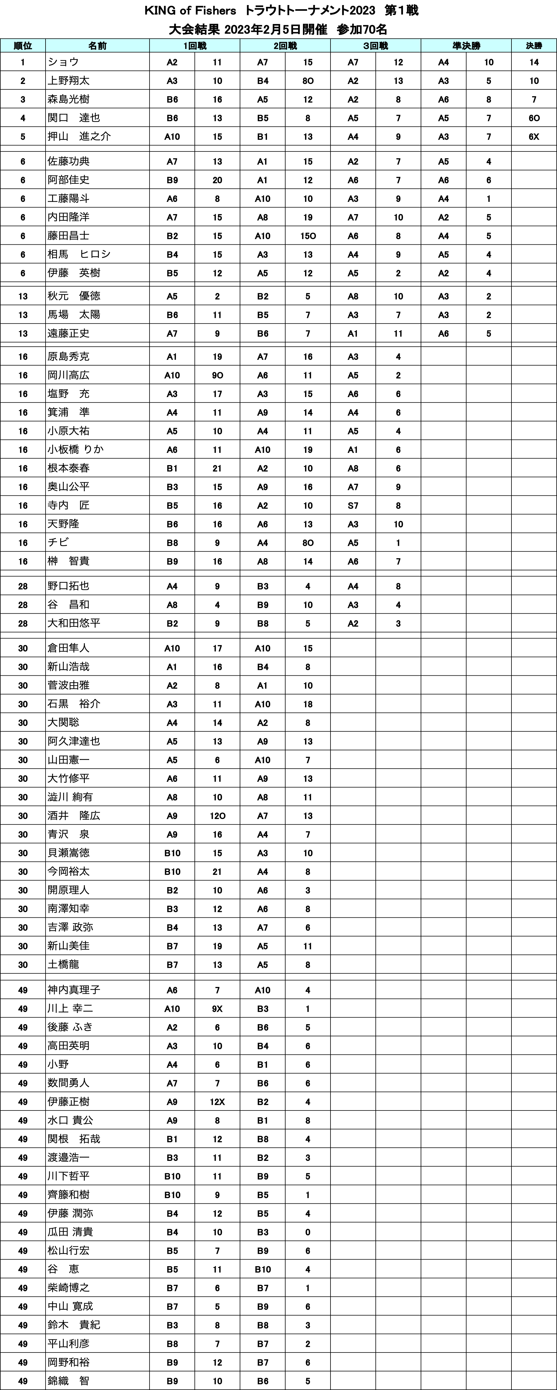 KING of Fishersトラウトトーナメント2023 第1戦結果・タックルデータ