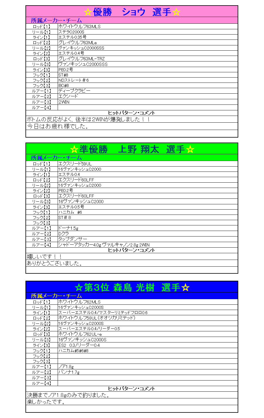 【大会結果】