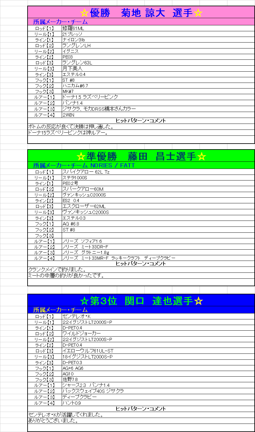 KING of Fishersトラウトトーナメント2023 第6戦結果・タックルデータ